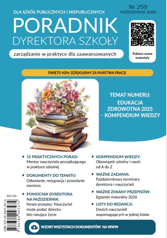 Choć zajęcia z edukacji zdrowotnej obowiązują od początku roku szkolnego, a do 25 września uczniowie i rodzice mogli składać rezygnacje z uczestnictwa, wciąż wiele kwestii budzie wątpliwości. W wielu szkołach nie ma wyznaczonych i odpowiednio przeszkolonych nauczycieli, rodzice obawiają się zakresu poruszanych tematów, nie wiadomo, czy zajęcia wchodzą do średniej i w czym powinny być dokumentowane. Dlatego przygotowaliśmy kompendium wiedzy na temat edukacji zdrowotnej 2025 – zgodnie z najnowszymi przepisami. Zbieramy i rozwiewamy wszystkie wątpliwości.W artykule m.in.:Czy zajęcia z edukacji zdrowotnej są obowiązkowe?Edukacja zdrowotna a wychowanie do życia w rodzinie - jakie są różnice?Czy zajęcia będą oceniane?Jakie są metody pracy na zajęciach?Jak zorganizować zajęcia edukacji zdrowotnej?Kiedy powinna rozpocząć się realizacja edukacji zdrowotnej?Czy rezygnacja z zajęć po 25 września oznacza, że uczeń, który przestanie w nich uczestniczyć, powinien mieć wpisywane nieobecności?Czy w edukacji domowej rodzice składają rezygnację z edukacji zdrowotnej?Praktyczne narzędzie:Ile godzin edukacji zdrowotnej w szkole podstawowej i ponadpodstawowejDokumenty do tematu:Oświadczenie o rezygnacji z udziału w zajęciach „edukacja zdrowotna” w przypadku ucznia pełnoletniegoOświadczenie o rezygnacji z udziału w zajęciach „edukacja zdrowotna” w przypadku ucznia niepełnoletniego